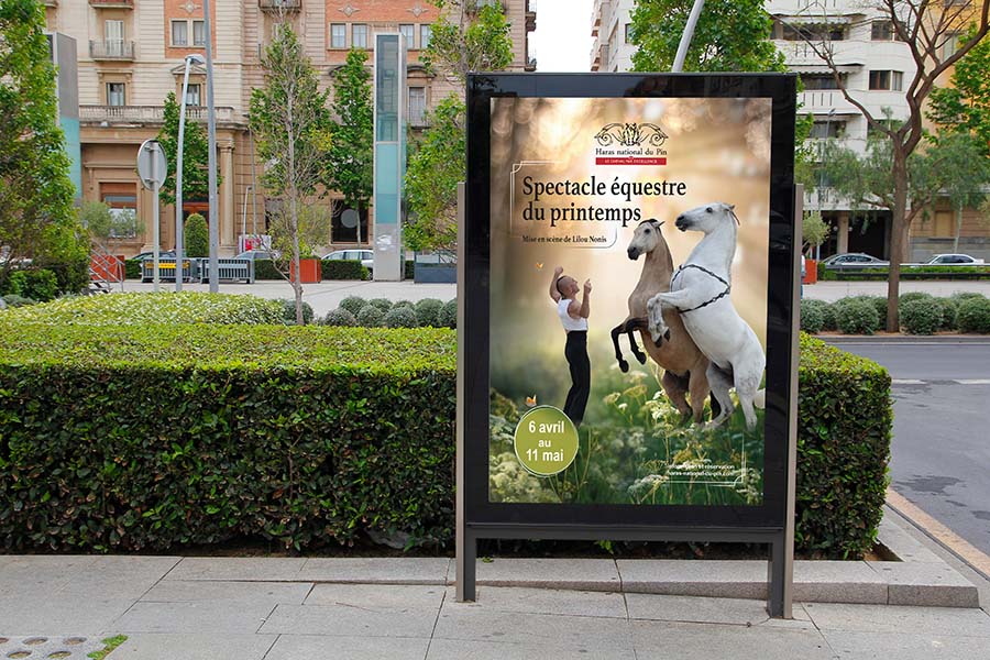 En 2025, Horse Graphic s'est vu confier la réalisation de l'affiche du spectacle de printemps et ses déclinaisons pour la promotion au niveau régional et sur le web. Une affiche qui se veut pleine de fraîcheur pour symboliser le renouveau saisonnier de la nature mais aussi de la saison touristique, tout en respectant les codes de la charte graphique du client.